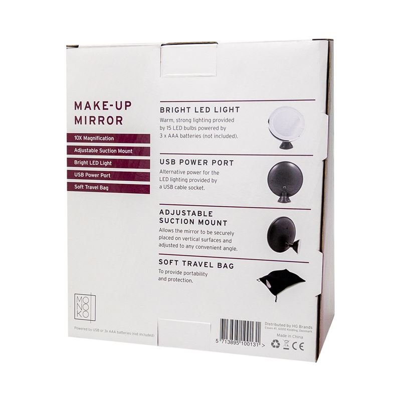 UNIQ Ronde Spiegel met LED-licht en Zuignap x10 Vergrotende Spiegel - Zwart