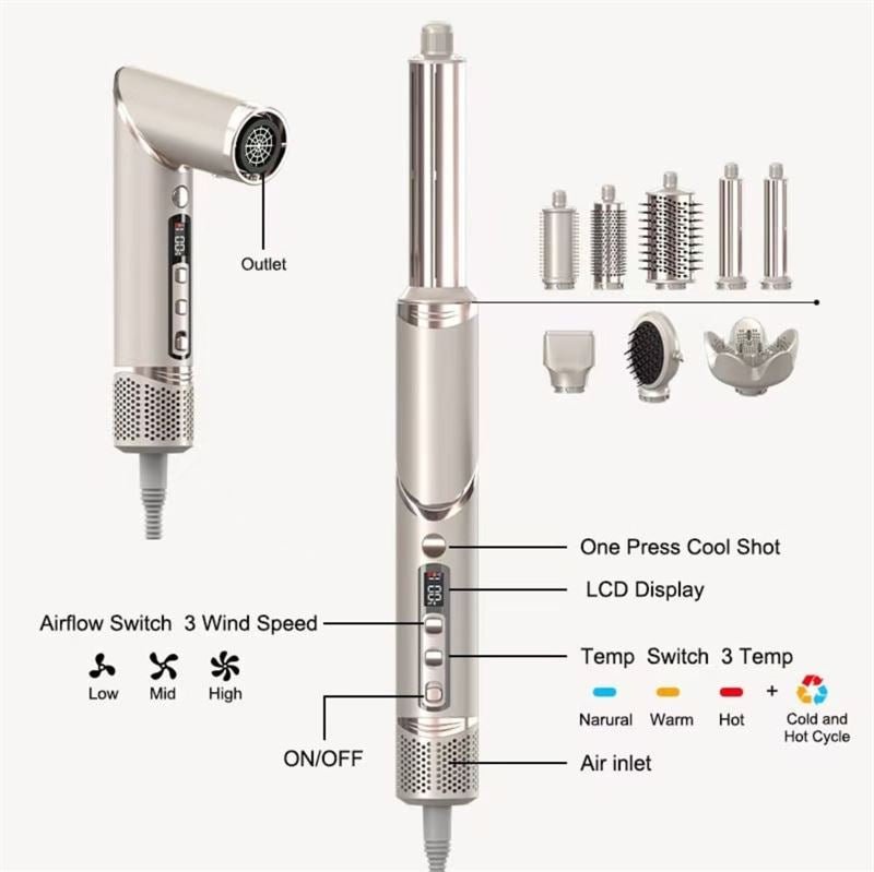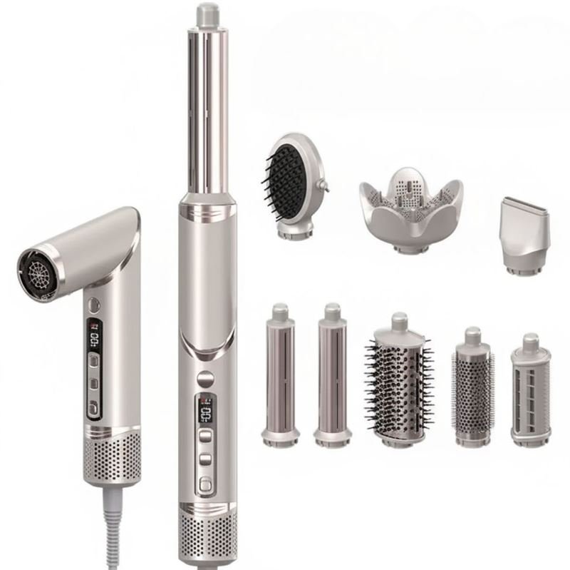 - 8 interchangeable heads – from sleek straight to bouncy curls and waves.