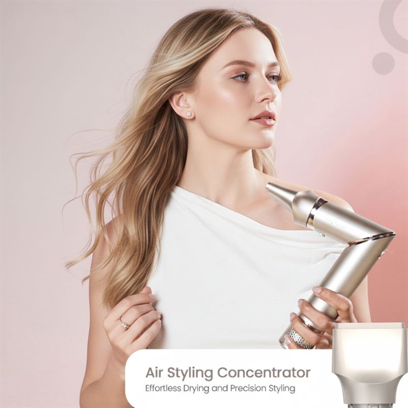 - Powerful 110,000 RPM motor dries and styles in minutes.
