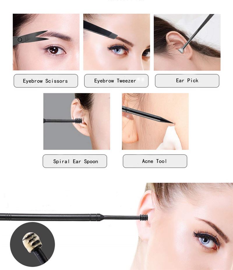 De set bevat gereedschap om dode huid op voeten en handen te verwijderen, een oorreiniger en een puistprikker. Dus wat je ook nodig hebt, je vindt het hier in een compact en stijlvol pakket.